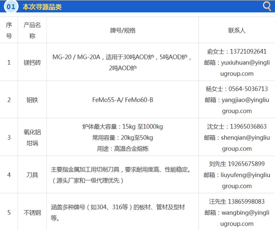 应流集团公开寻源镁钙砖、钼铁、氧化铝坩埚、刀具、不锈钢等供应商 诚邀优质供应商携手同行